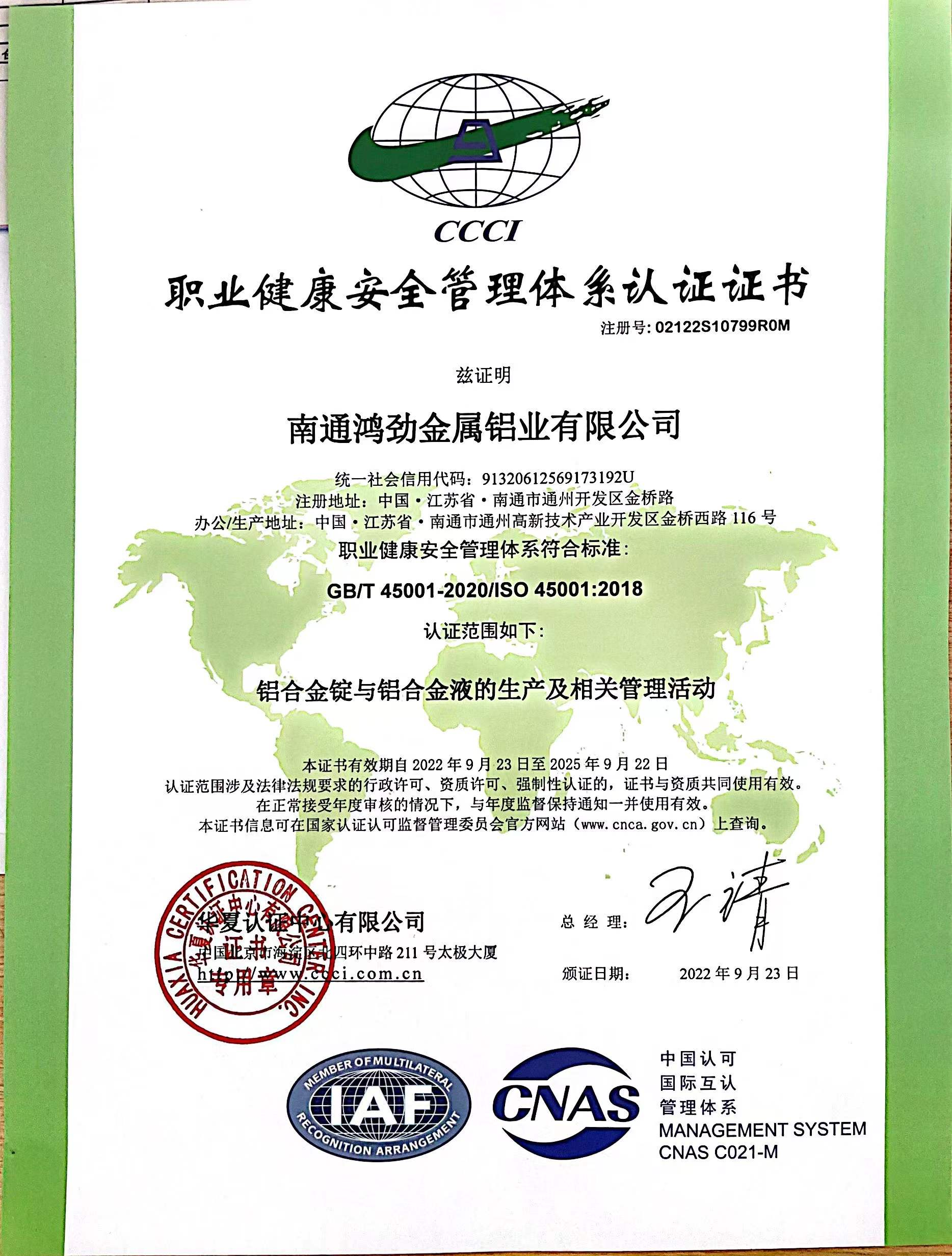 南通鴻勁ISO45001