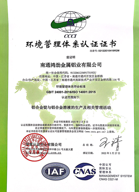 南通鴻勁ISO140001