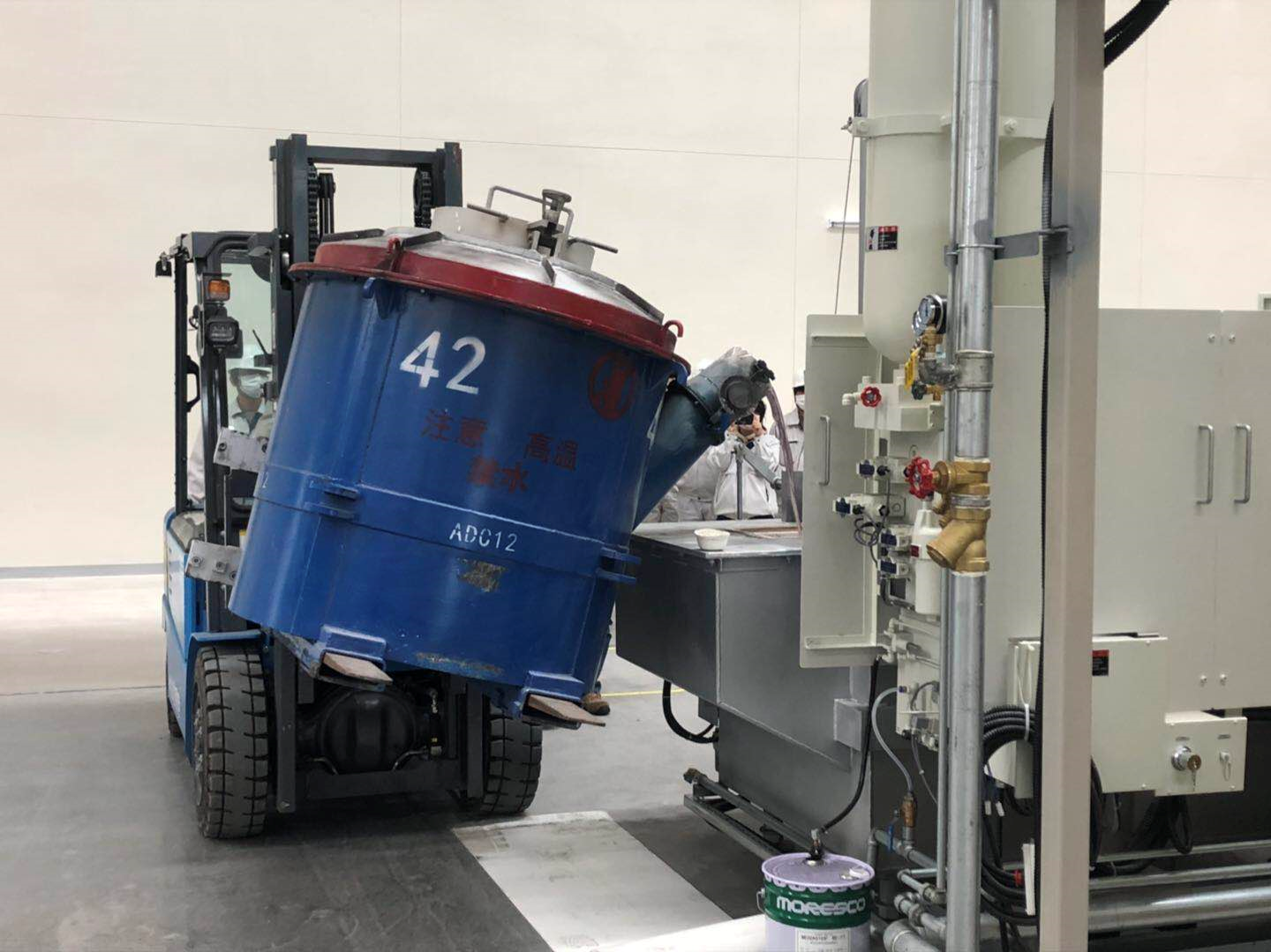 本公司生產(chǎn)的鋁合金液給周圍客戶提供鋁液,配送服務;采用安全、保溫性能良好的專用轉(zhuǎn)運包盛裝并運送到客戶處。